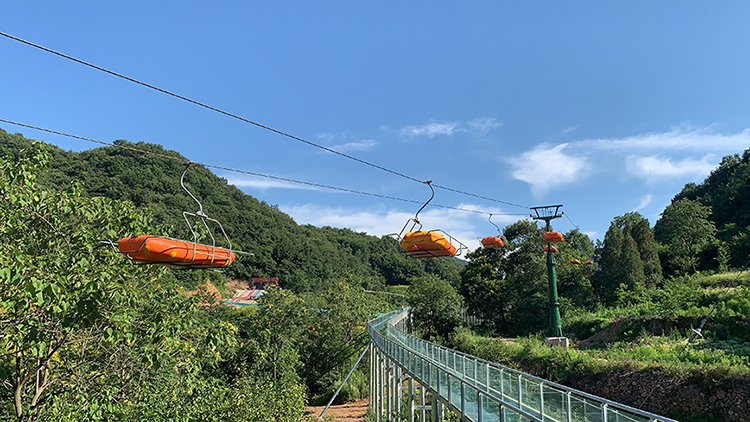 固定抱索器拖船索道主要用于漂流水滑,索道整體分布為驅(qū)動(dòng)站、迂回站和線路部分,漂流船吊籃通過(guò)固定抱索器與鋼絲繩固定在一起。驅(qū)動(dòng)站是為索道提供動(dòng)力的部位,經(jīng)迂回站的迂回輪導(dǎo)向后,把裝載有漂流船的運(yùn)輸?shù)趸@返回至上游的驅(qū)動(dòng)站,達(dá)到運(yùn)輸漂流船的目的,利用索道方式運(yùn)輸漂流船的效率高。索道造價(jià)低,維護(hù)成本低,配置工作人員少,節(jié)約運(yùn)輸成本。